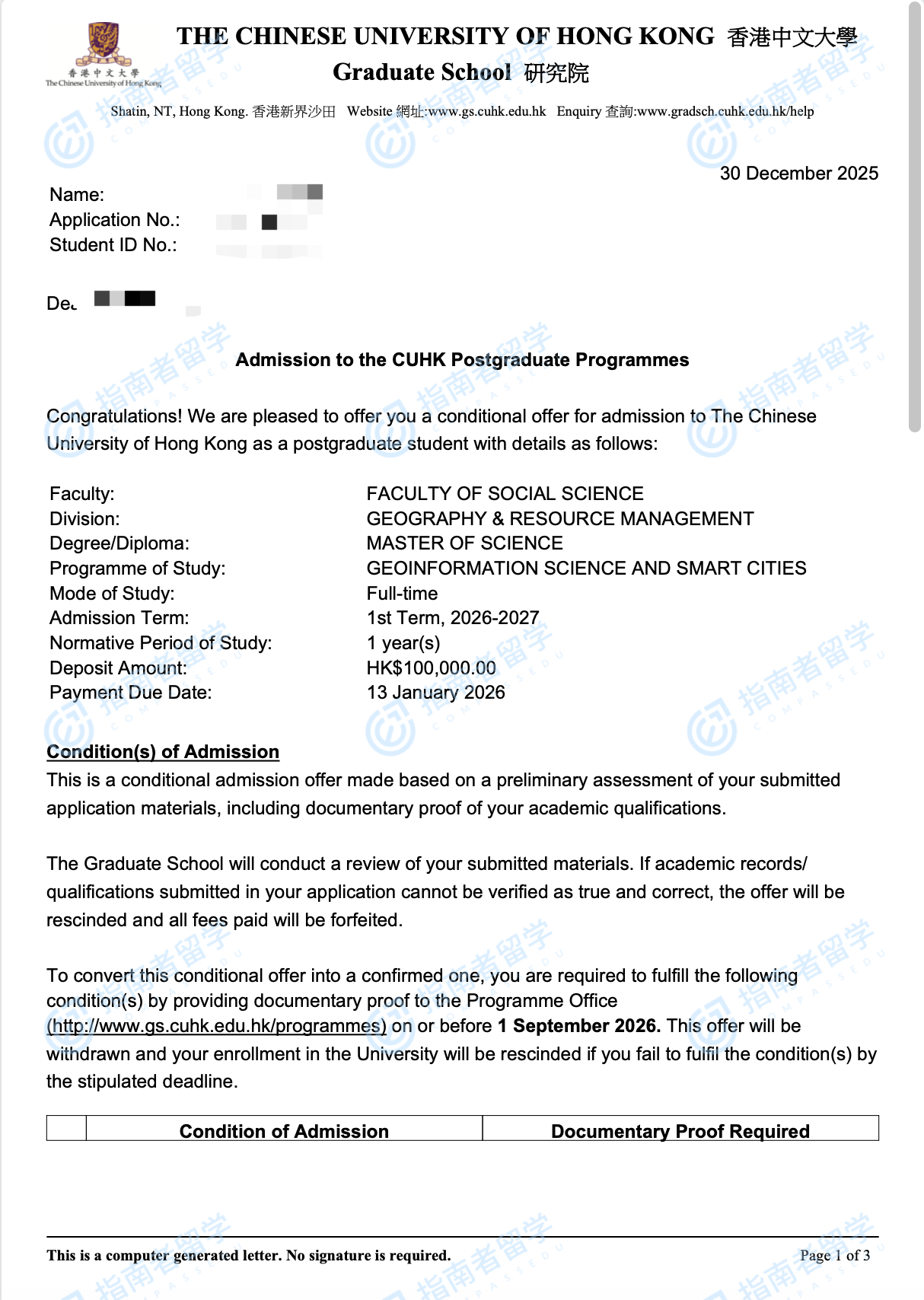 香港中文大学地理信息科学与智慧城市理学硕士研究生offer一枚