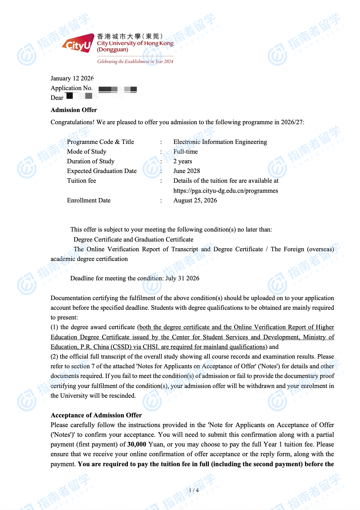 香港城市大学电子资讯工程学理学硕士(CityU-DG)研究生offer一枚