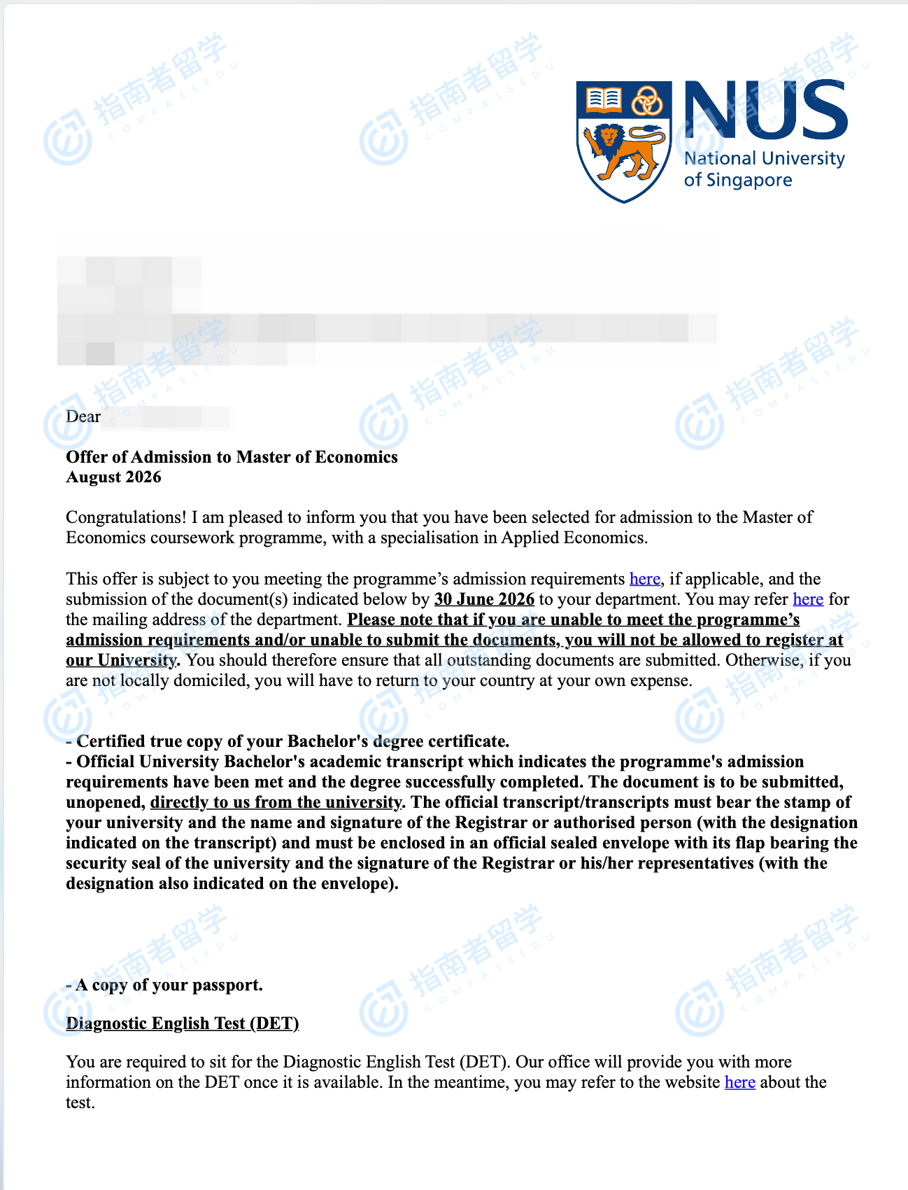 - 具有新加坡国立大学荣誉学位(优异/二等及以上)或同等学历(例如,4年制学士学位且平均成绩至少达到B或同等水平),需要该学科或相关领域背景;或<br> - 具有良好的学士学位(平均成绩至少达到B或同等水平),需要该学科或相关领域背景,并成功完成分班考试;或<br> - 特殊情况下接受研究生院认可的其他资格和经验。<br> 需要提供存款证明70,000新币<br> 应用经济学方向提供1月、8月入学,数量经济学方向仅提供8月入学