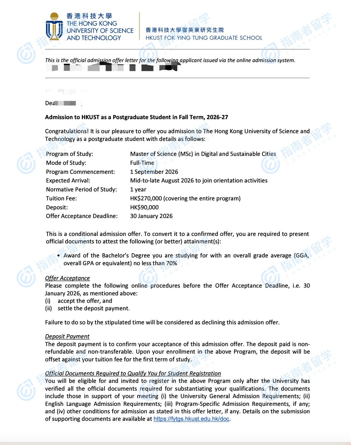 香港科技大学数字与可持续城市理学硕士研究生offer一枚