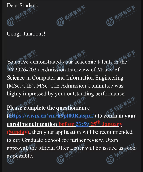 香港中文大学计算机与信息工程理学硕士(CUHK-Shenzhen)研究生offer一枚
