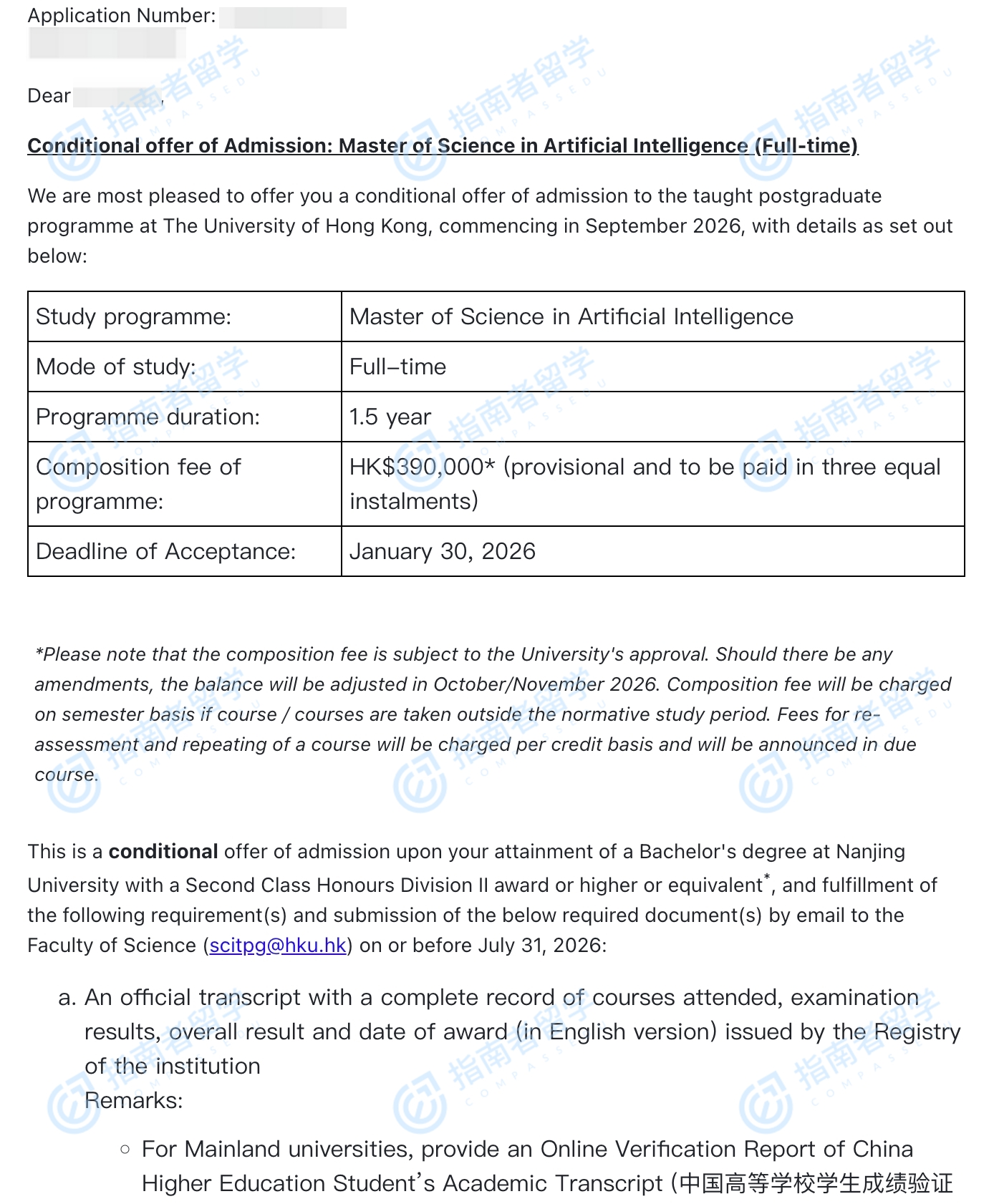 香港大学人工智能理学硕士研究生offer一枚