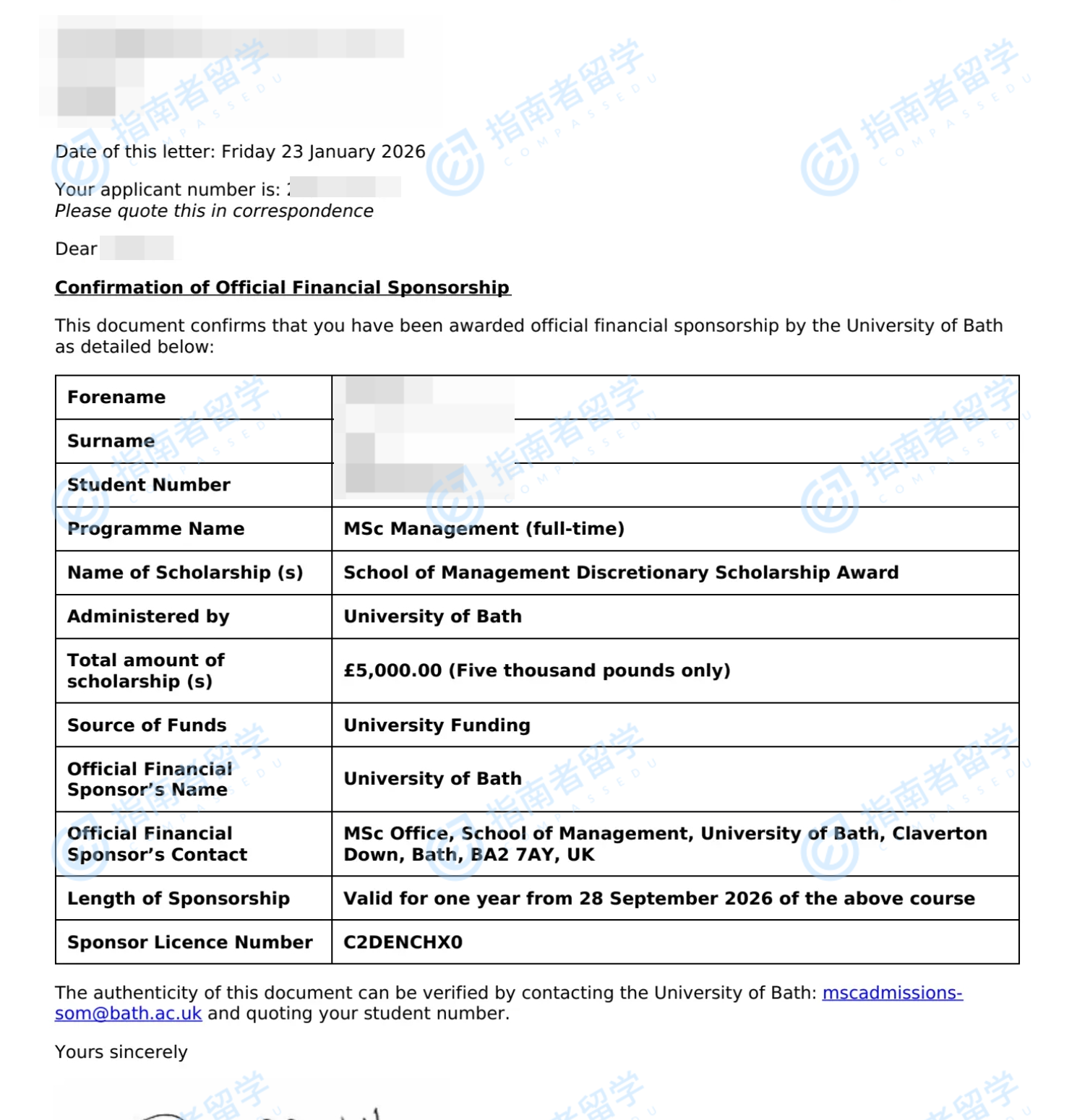 巴斯大学管理学理学硕士研究生offer一枚