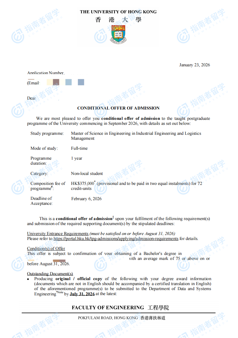 香港大学工业工程与物流管理(工程)理学硕士研究生offer一枚