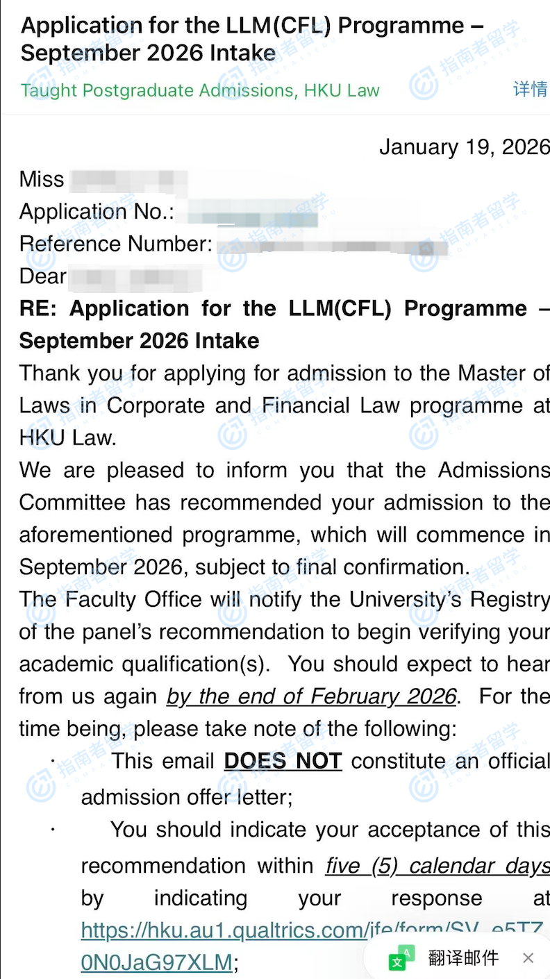 香港大学企业与金融法法学硕士研究生offer一枚