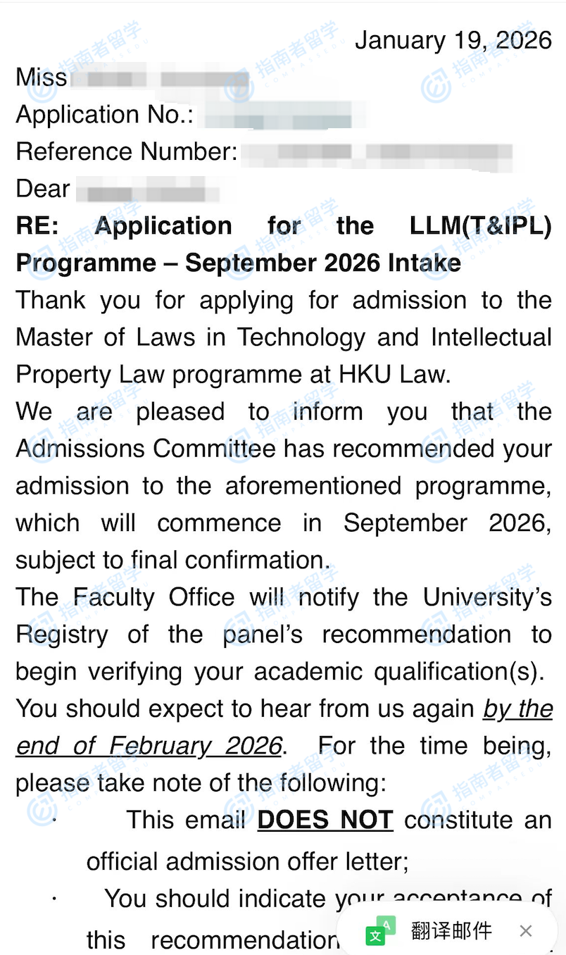 香港大学技术与知识产权法法学硕士研究生offer一枚