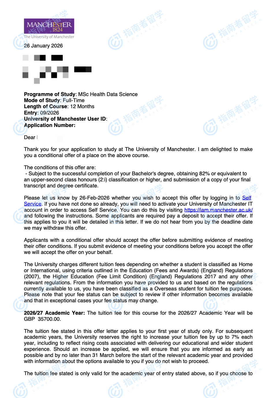 曼彻斯特大学健康数据科学理学硕士研究生offer一枚