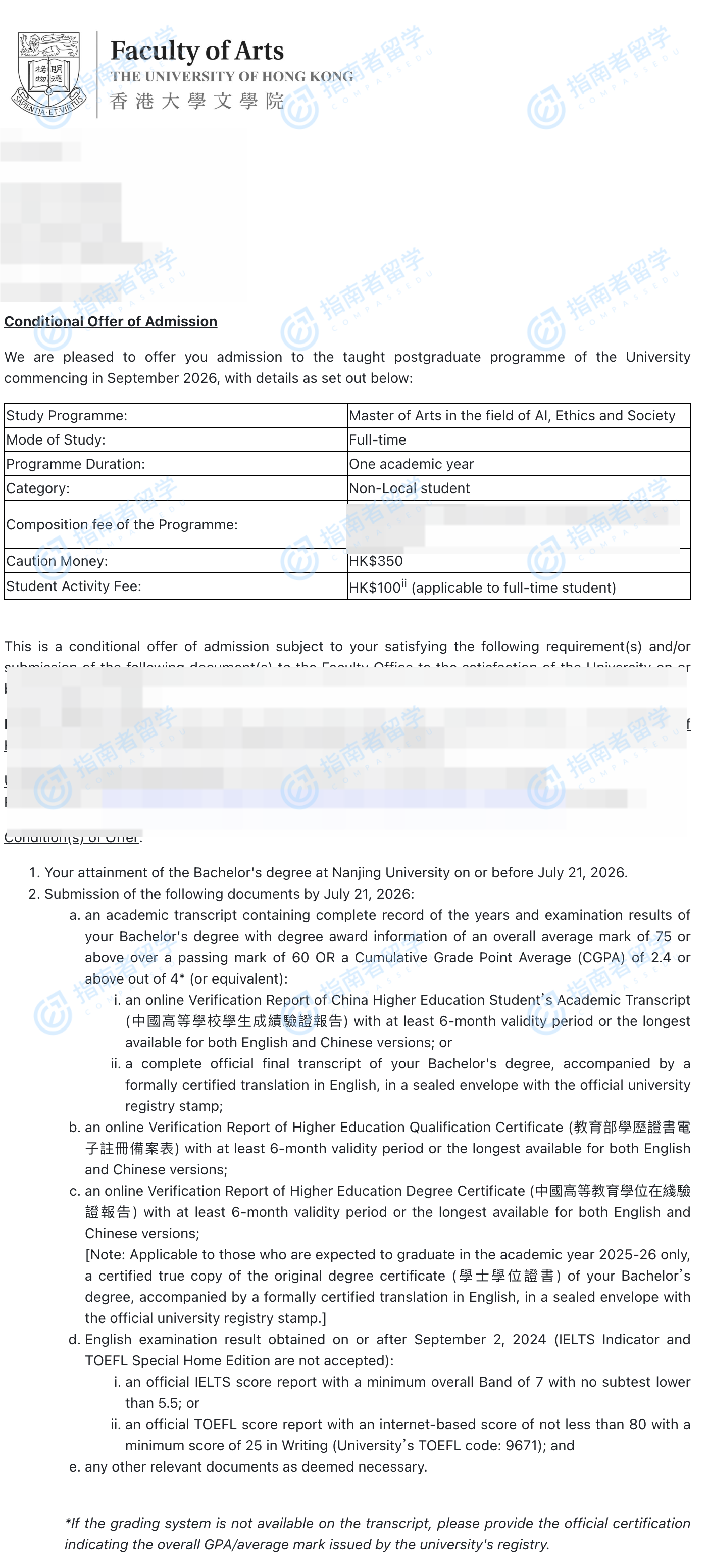 香港大学人工智能、伦理与社会文学硕士研究生offer一枚