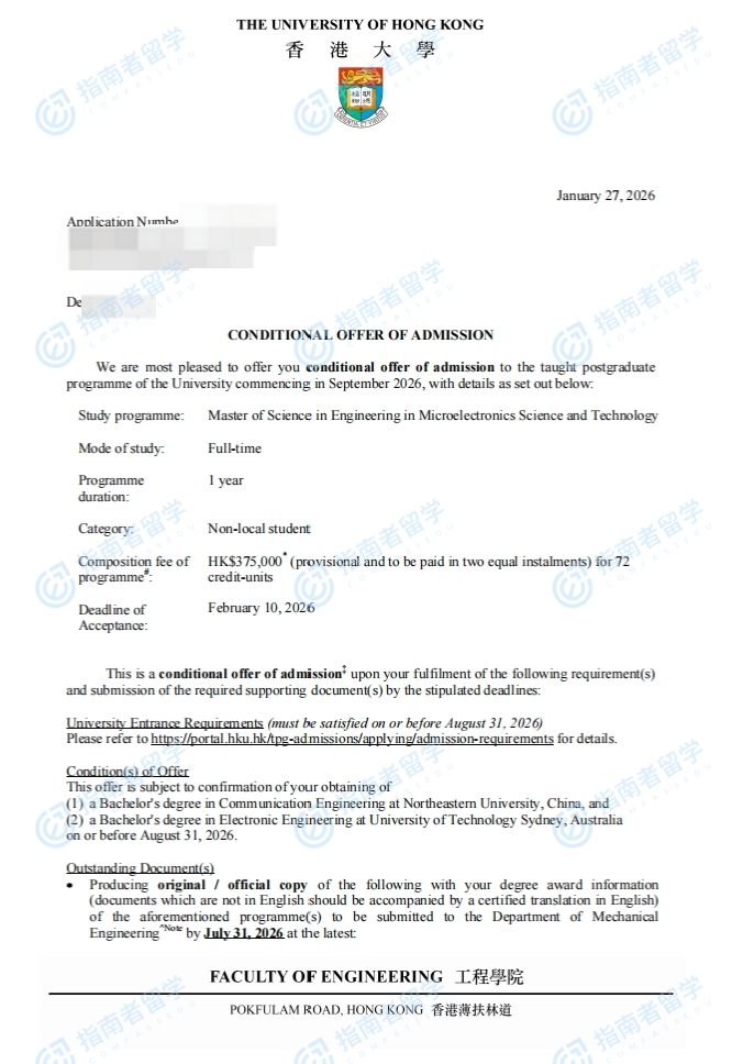 香港大学微电子科学与技术(工程)理学硕士研究生offer一枚