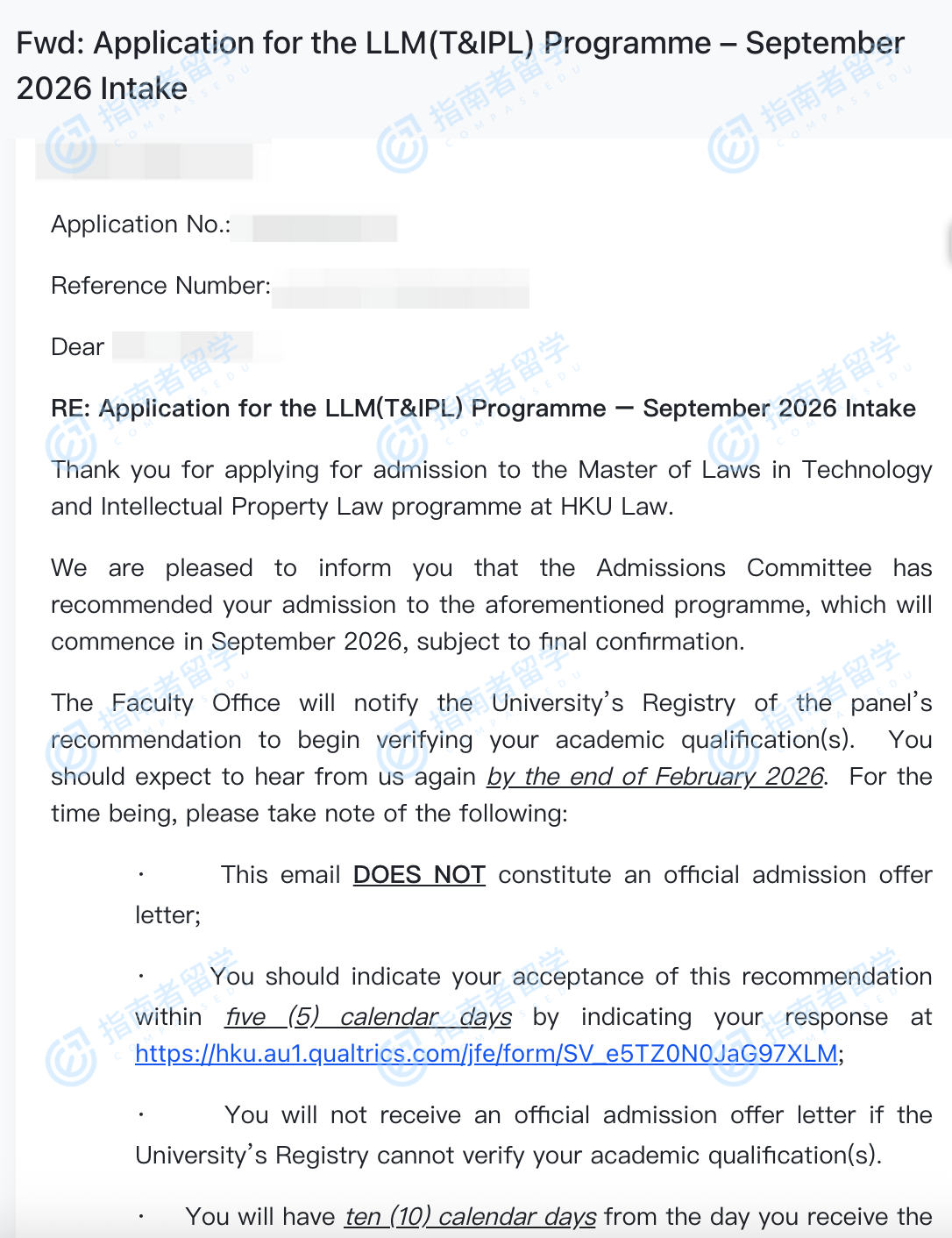 香港大学技术与知识产权法法学硕士研究生offer一枚