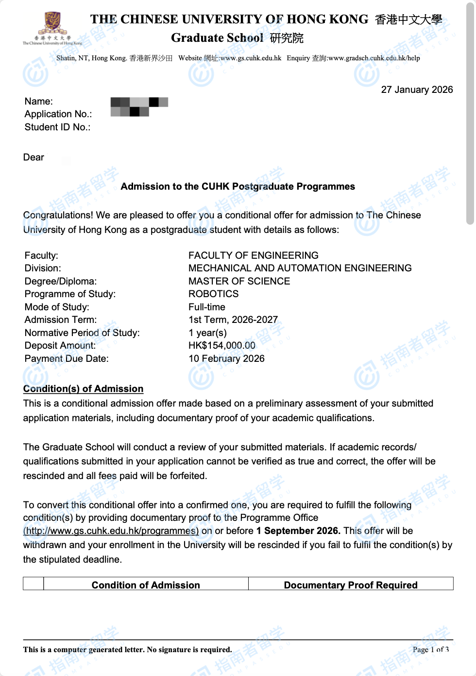 香港中文大学机器人学理学硕士研究生offer一枚