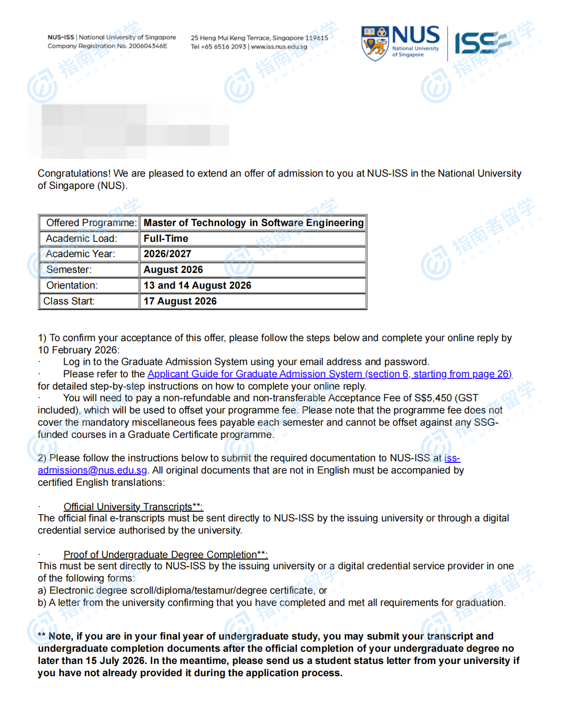 新加坡国立大学软件工程科技硕士研究生offer一枚