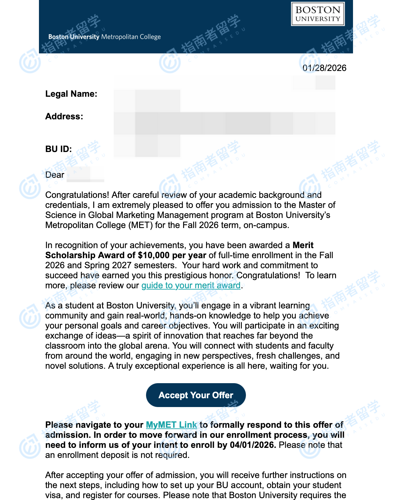 波士顿大学全球市场营销管理硕士研究生offer一枚