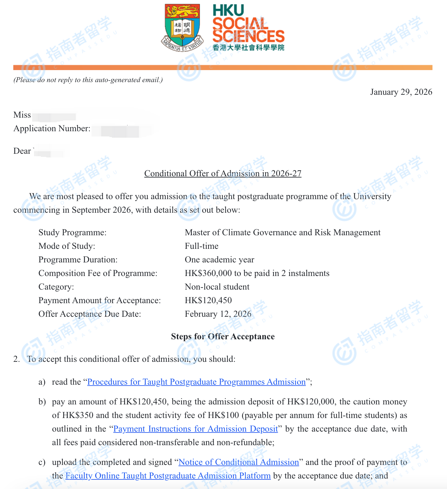 香港大学气候治理与风险管理硕士研究生offer一枚