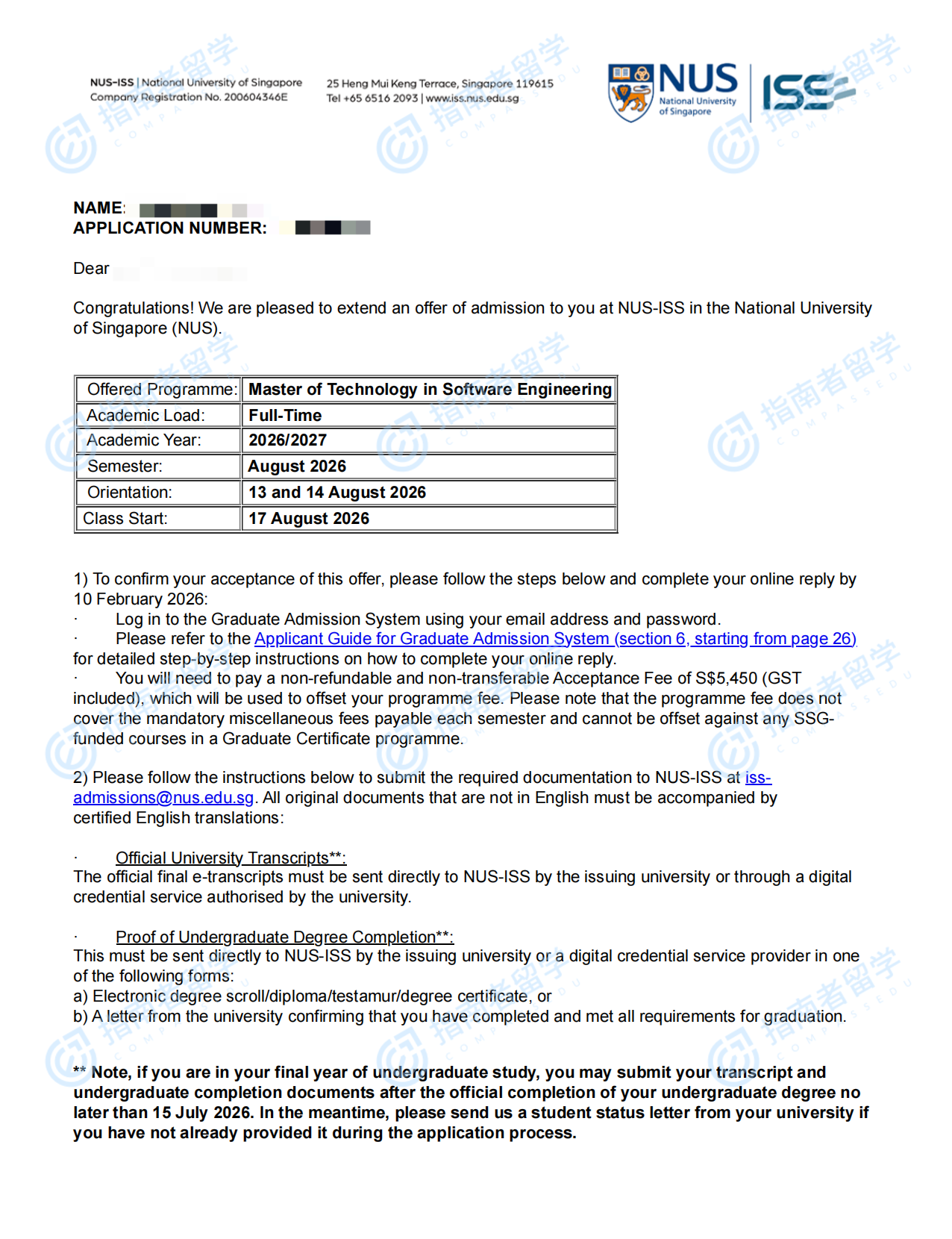 新加坡国立大学软件工程科技硕士研究生offer一枚