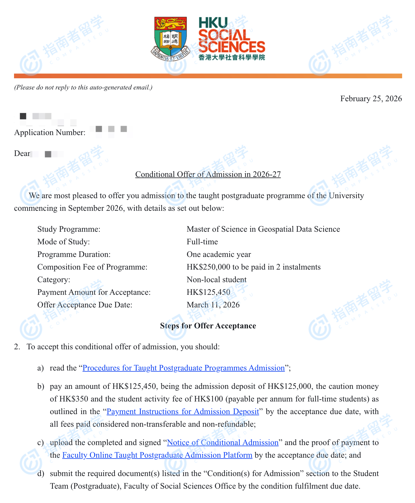 香港大学地理空间数据科学理学硕士研究生offer一枚
