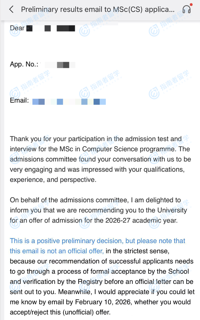香港大学计算机科学理学硕士(常规方向)研究生offer一枚