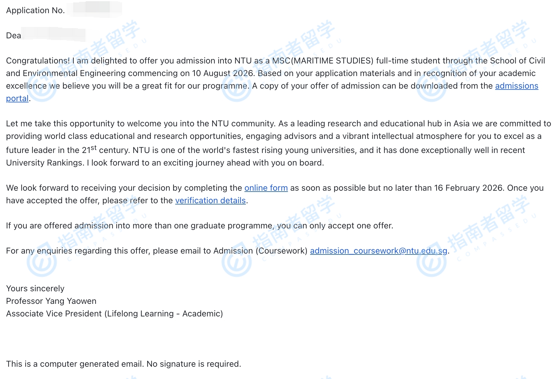 <p>南洋理工大学海事研究理学硕士项目旨在填补海事研究领域的教学空白,为海事及相关行业内的专业人士提供研究生阶段高价值的教育,将学生从区域性业务管理的实践背景提升到国际层次,以满足新加坡航运业的业务能力向世界水平提升的需求。南洋理工大学海事研究理学硕士学位课程主要面向海事相关领域的本科毕业生以及中层管理人员,为其提供继续深造的途径。同时,那些非海事管理相关专业但有志于从事该领域工作的本科生也可以申请该项目。我们将为其提供必要的海事专业知识和先进的海事管理手段,致力于培养出新一代的海事航运管理人才。海事管理理学硕士项目由南洋理工大学和挪威创新与创业研究所联合开设并在2009年新加坡国际海事管理颁奖典礼上荣获“培训发展卓越奖”。南洋理工大学也因其对新加坡海事教育事业做出的突出贡献得到了广泛的认可。</p>