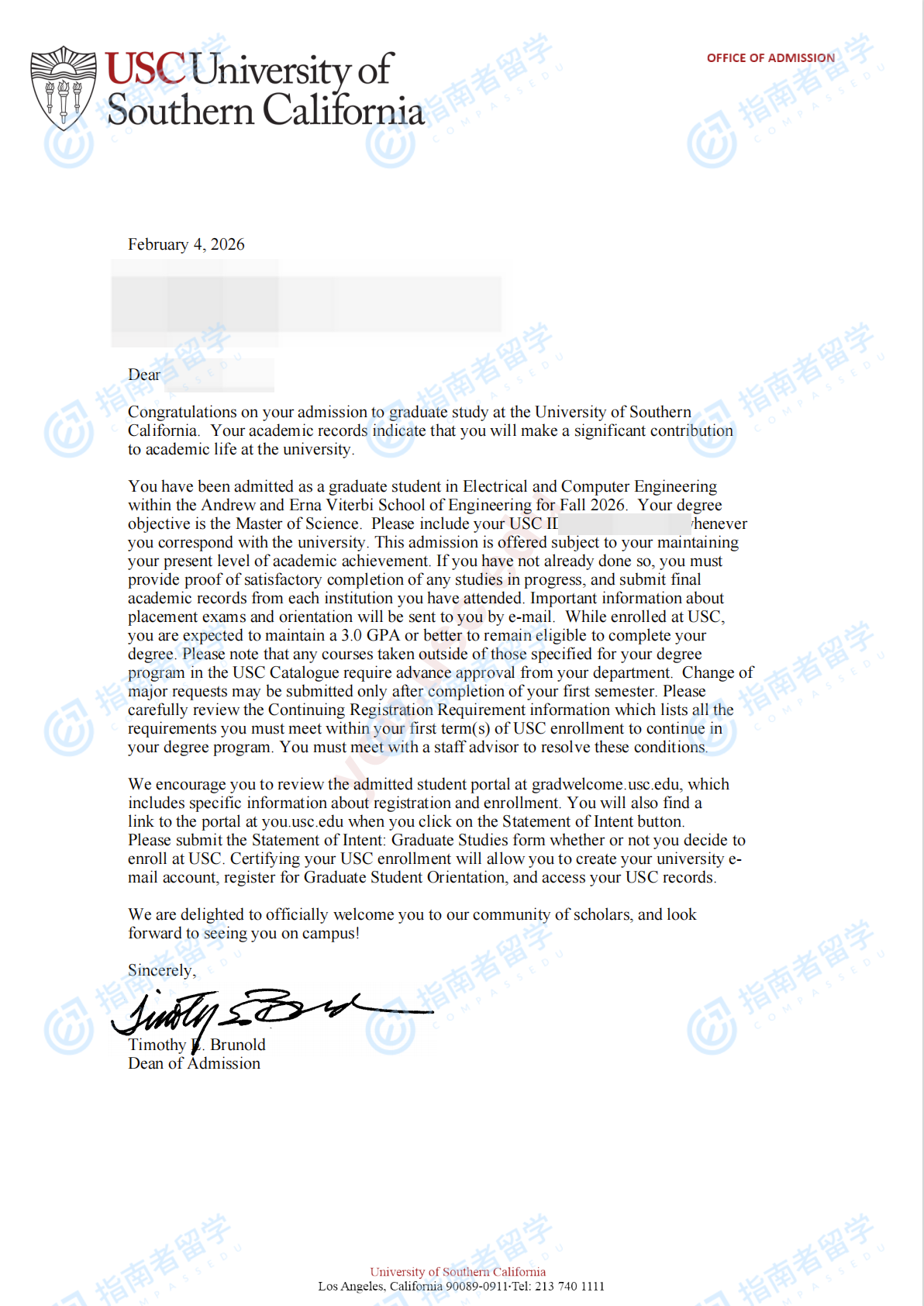 南加州大学电气工程理学硕士研究生offer一枚