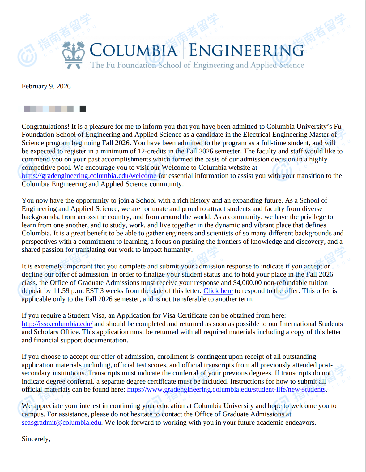 哥伦比亚大学电气工程硕士研究生offer一枚