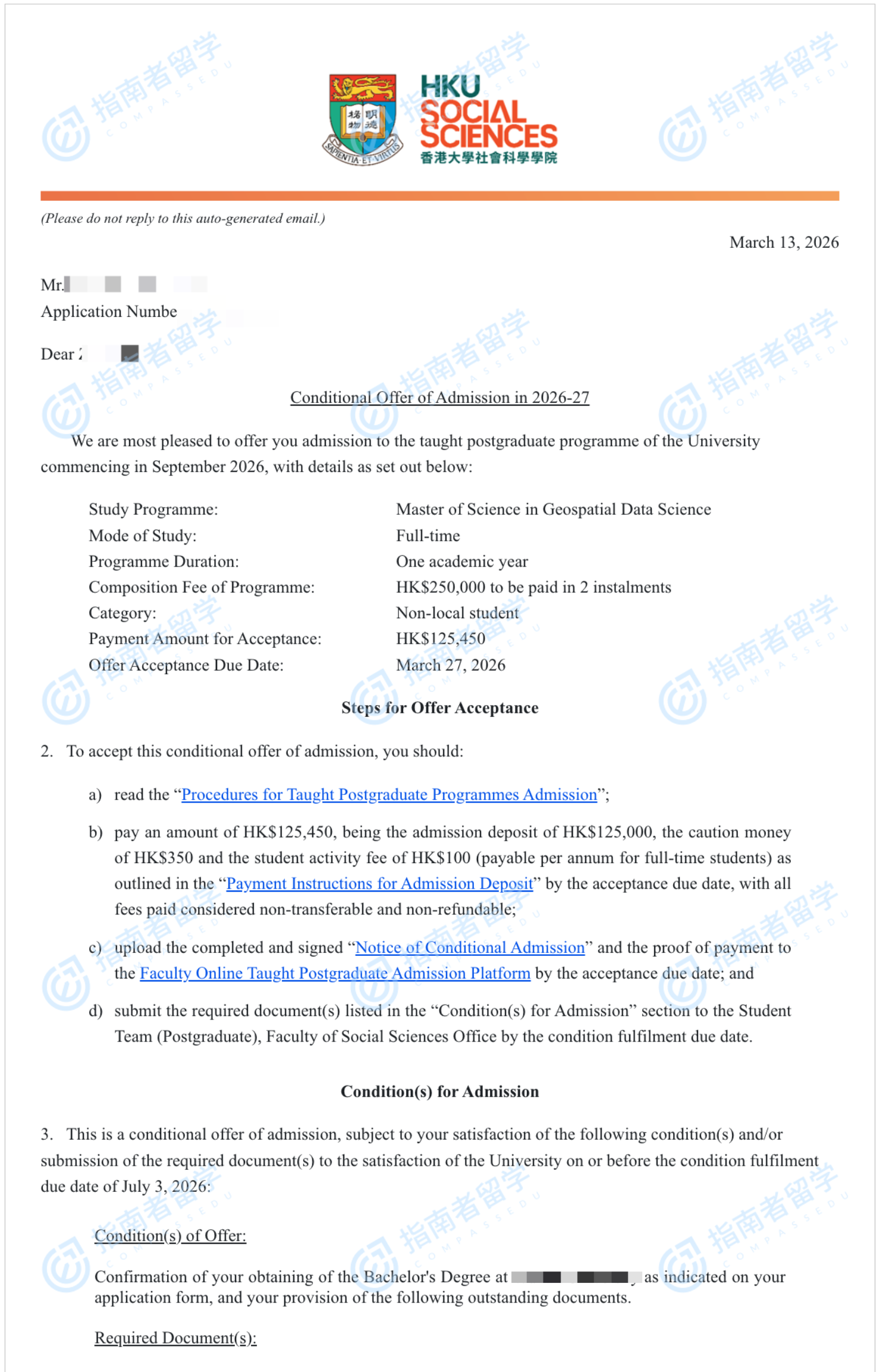香港大学地理空间数据科学理学硕士研究生offer一枚