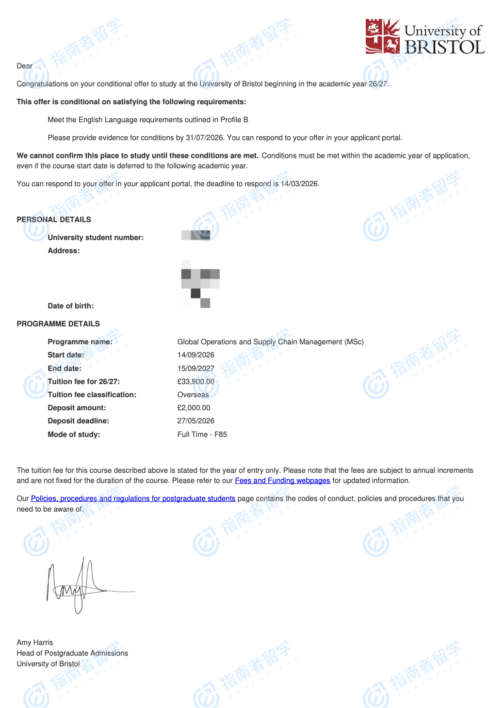布里斯托大学全球运营与供应链管理理学硕士研究生offer一枚