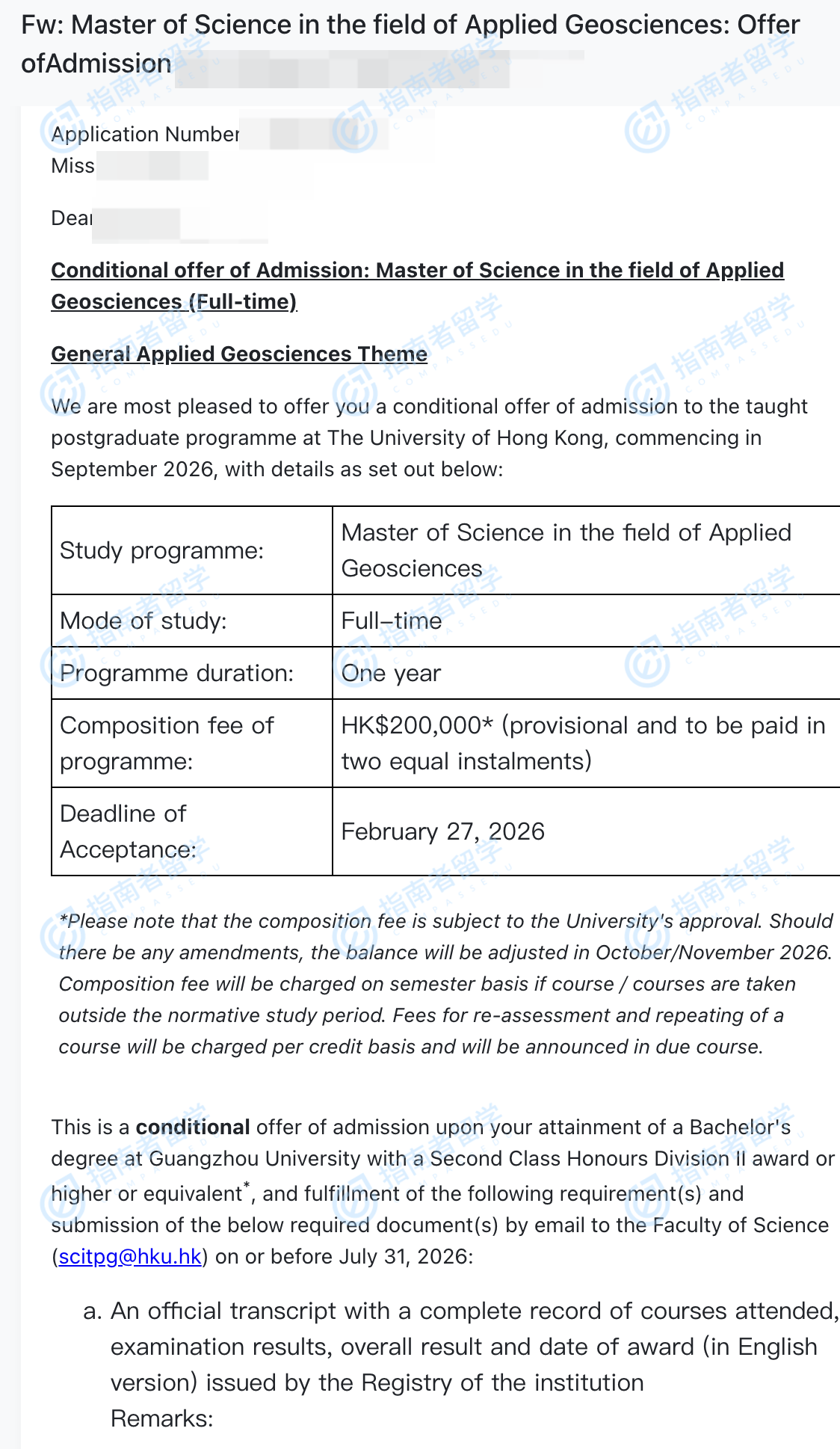 <p>香港大学应用地球科学硕士学位课程为本科毕业生们提供应用地球学领域的深造机会,有助于他们的职业生涯发展和个人发展。学生可以选择以下某一具体的研究领域进行深入学习:工程地理学、工程地理学(香港工程师协会认可课程)。所有的研究方向的课程都包含地质学原理与实践,地质学专业研究和专题研究论文三门核心课程。</p>