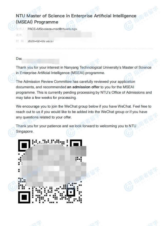 南洋理工大学企业人工智能理学硕士研究生offer一枚