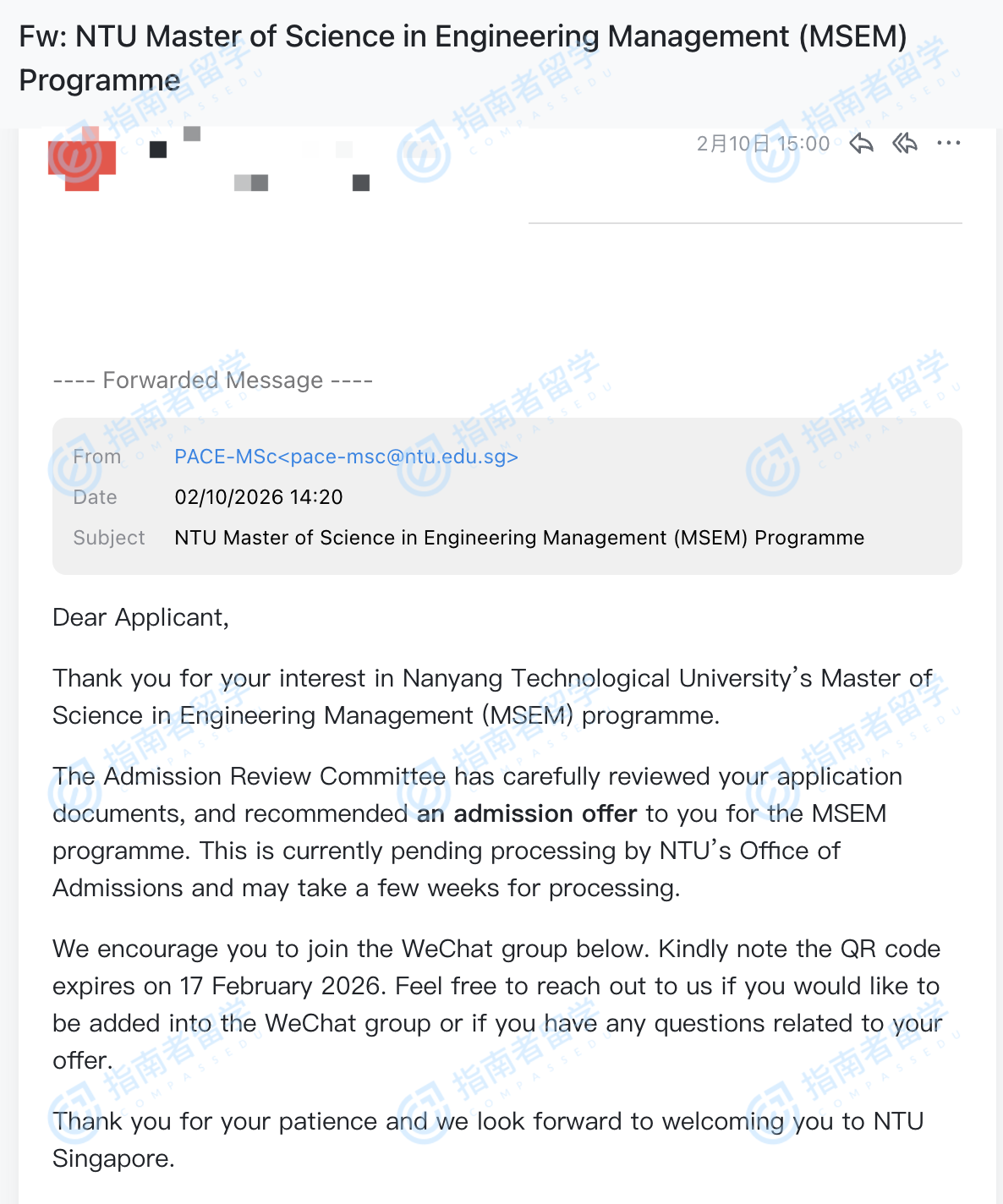 南洋理工大学企业人工智能理学硕士研究生offer一枚