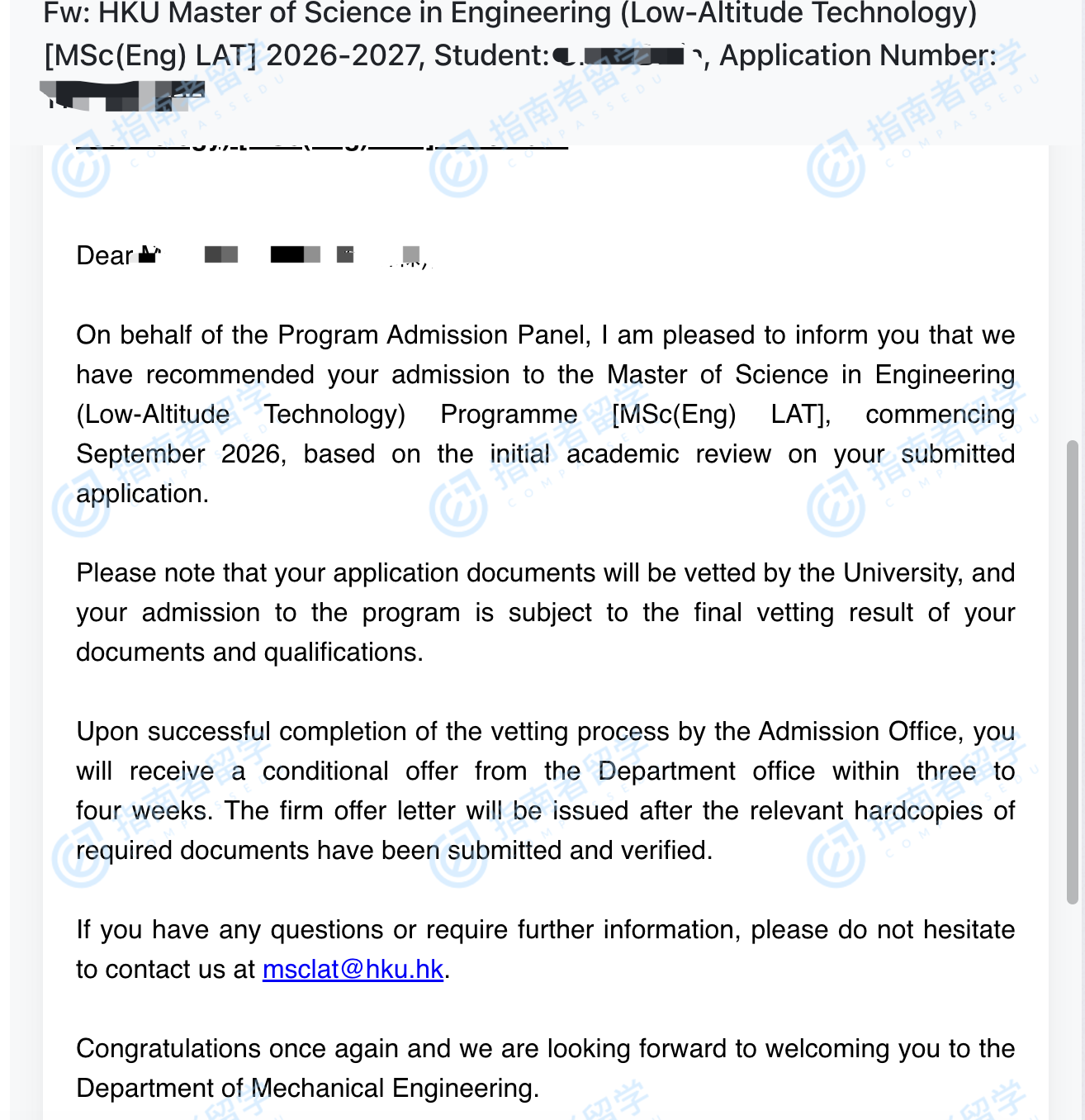 香港大学低空科技(工程)理学硕士研究生offer一枚