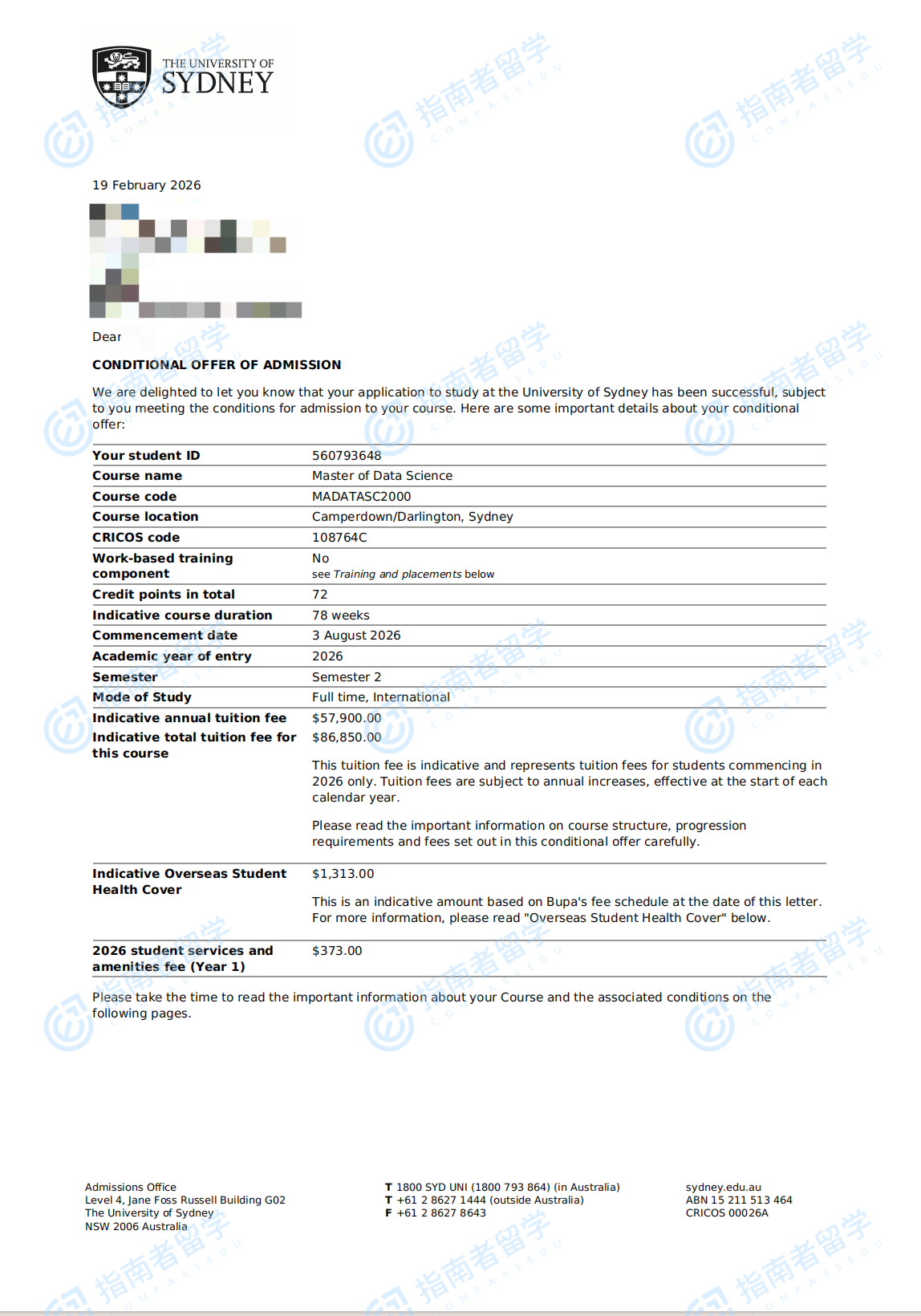 - 具有相关学科的3年制澳大利亚学士学位,需要计算机编程和统计学背景,平均学分至少达到65%;或<br> - 具有悉尼大学颁发的数据科学研究生文凭或同等学历,平均学分至少达到65%;或<br> - 完成悉尼大学数据科学研究生文凭或研究生证书的24个学分,平均学分至少达到65%,24个学分必须包括数据科学核心单元的12个学分和数据科学专业选修单元12学分。和<br> 如果申请者具有相关学科相当于澳大利亚AQF 8级或以上水平的学位,则可能有资格获得最多24学分或0.5年/1学期的减少学习量<br> 相关学科包括计算机科学、数据科学、数学、统计学、工程学、物理学、经济学或金融学