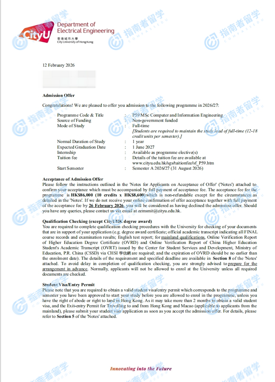香港城市大学电子计算机与资讯工程理学硕士研究生offer一枚