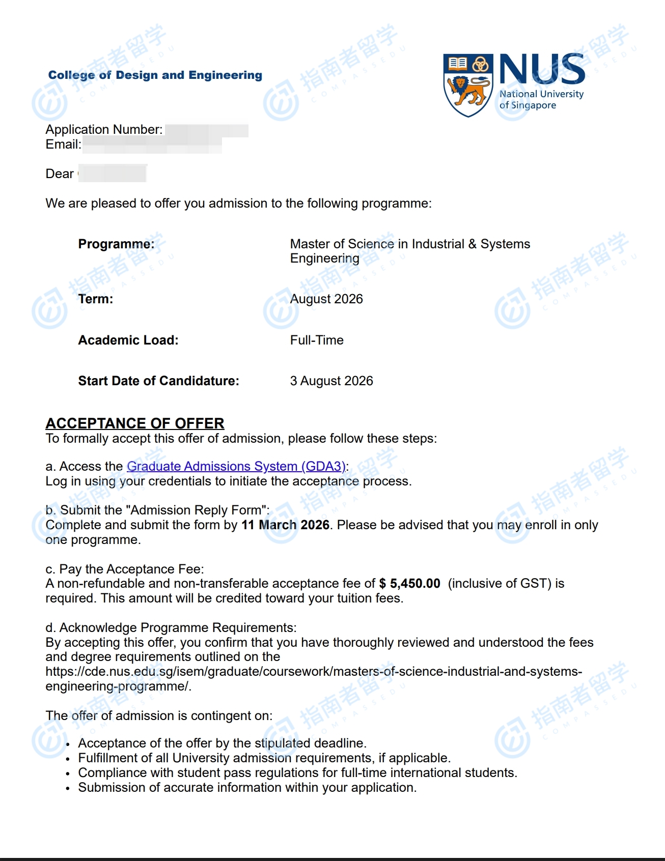 新加坡国立大学工业与系统工程理学硕士研究生offer一枚