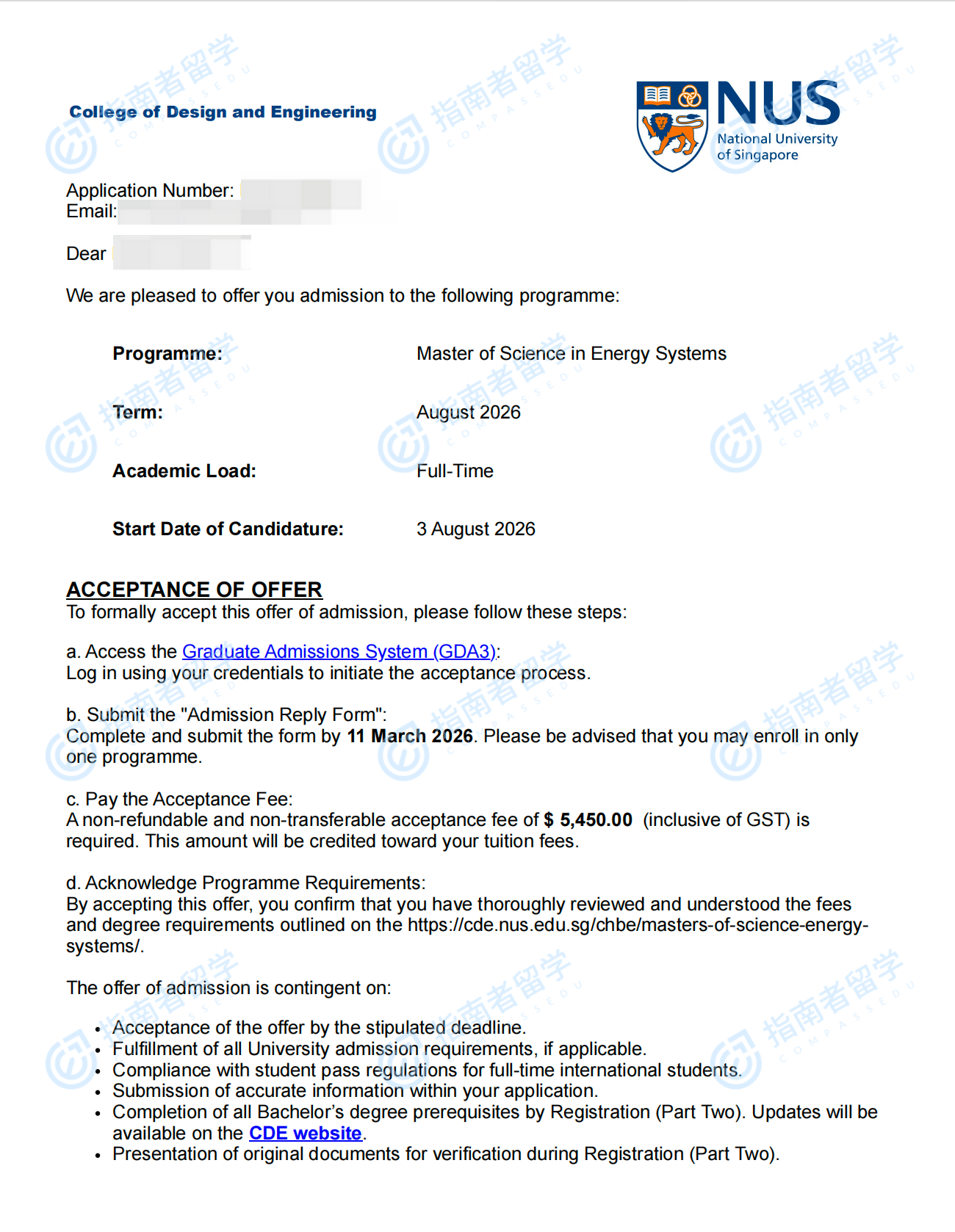 新加坡国立大学能源系统理学硕士研究生offer一枚