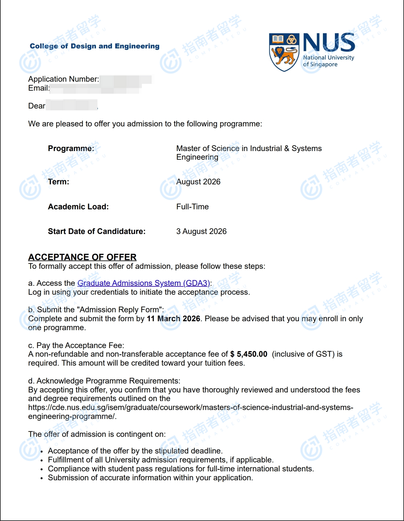 新加坡国立大学工业与系统工程理学硕士研究生offer一枚