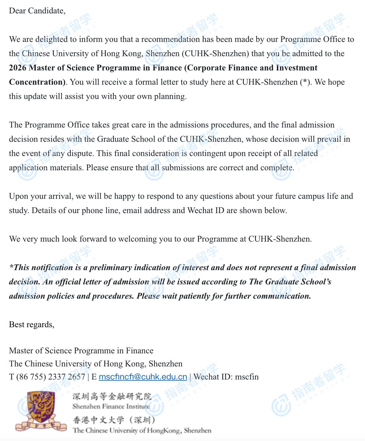 <p>香港中文大学(深圳)金融学硕士项目旨在培养具有深厚理论培训和实践能力的卓越的高技能专业人员。课程由世界一流的、受过国际培训的教师和非常成功的高级金融从业人员共同教授。香港中文大学(深圳)金融学硕士项目课程提供两个专业,即金融科技和金融管理,使学生能够发展金融业的专业技能。</p>