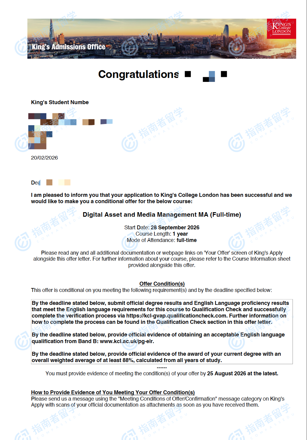 伦敦大学国王学院数字资产与媒体管理文学硕士研究生offer一枚