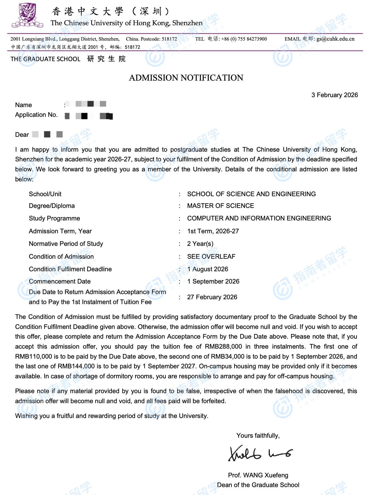 香港中文大学计算机与信息工程理学硕士(CUHK-Shenzhen)研究生offer一枚