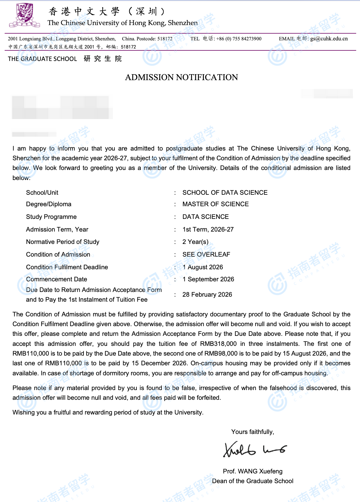 香港中文大学数据科学理学硕士(CUHK-Shenzhen)研究生offer一枚