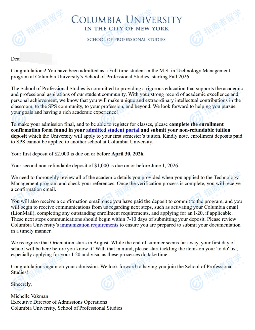 哥伦比亚大学技术管理理学硕士研究生offer一枚