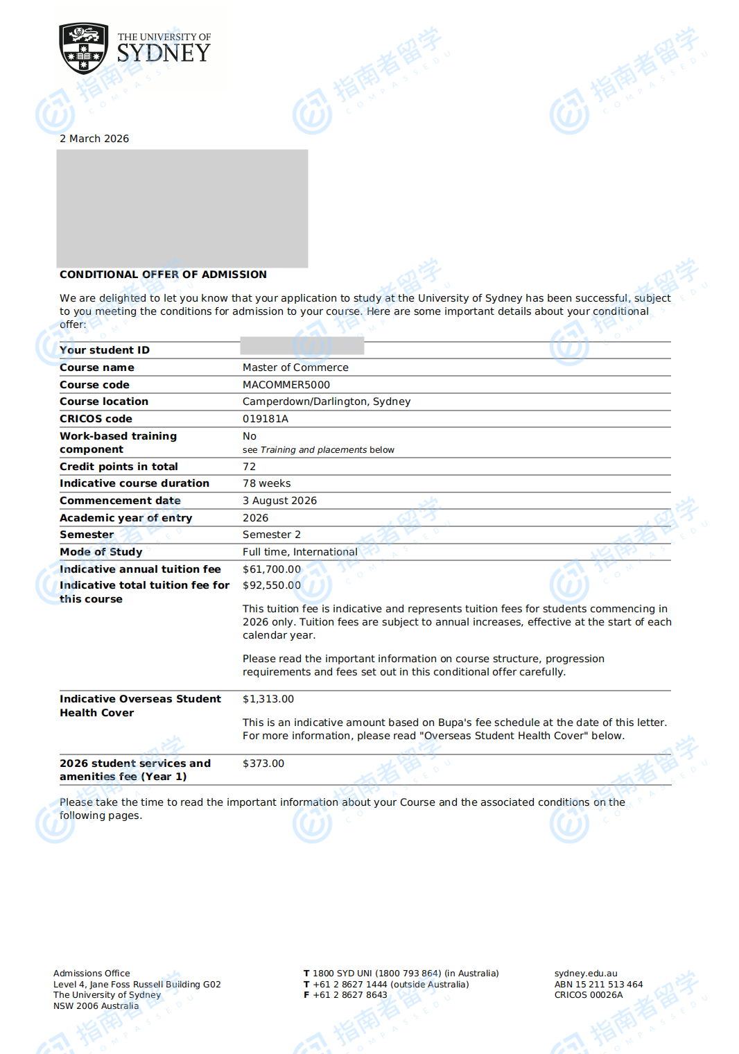 - 具有悉尼大学颁发的商学研究生文凭或研究生证书,平均学分达到65%。