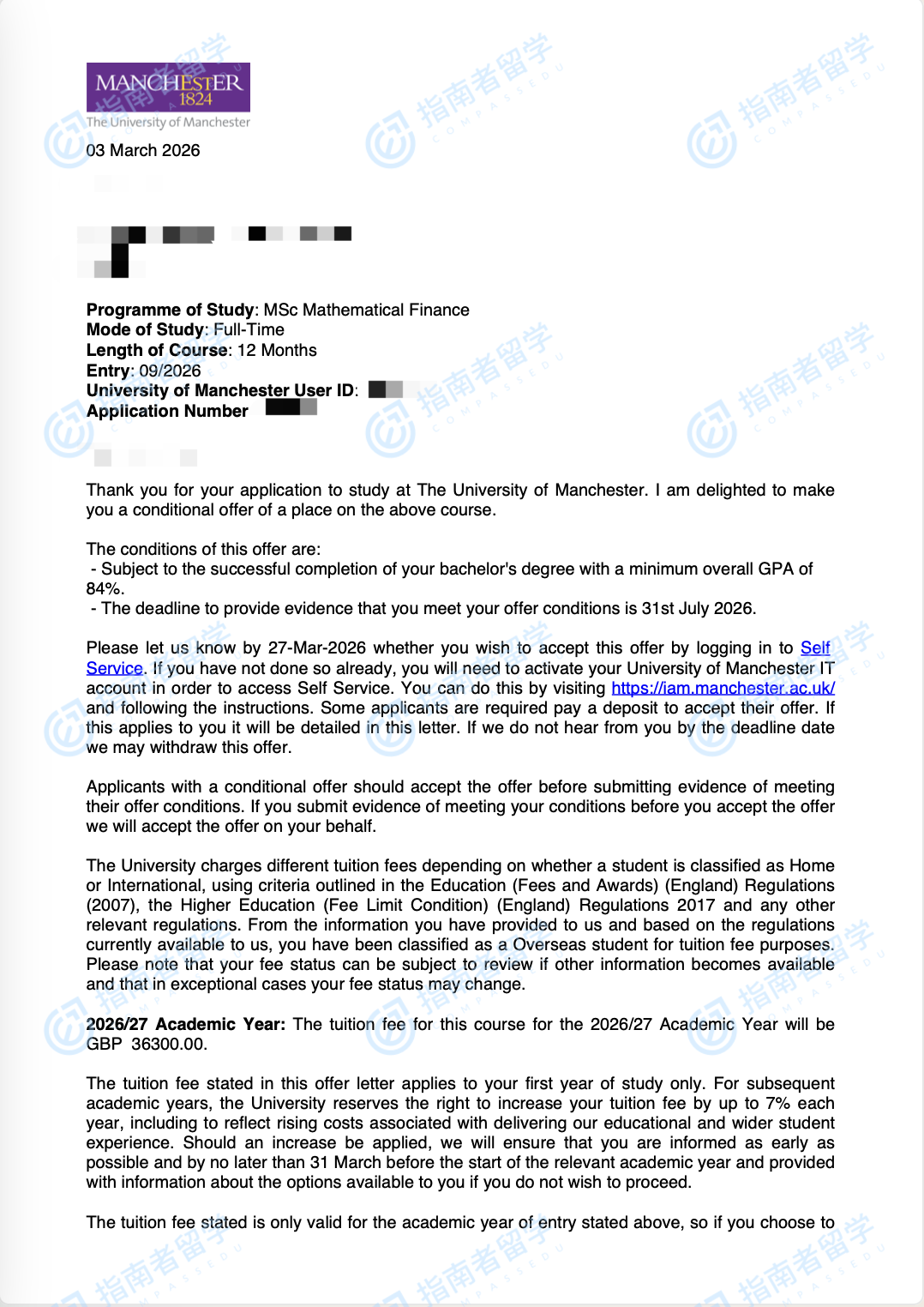 <p>曼彻斯特大学数学金融理学硕士项目为时一年,融合了数学和金融学专业理论,课程重点关注数学理论和建模,从概率论、科学计算和偏微分方程理论出发,推导资产价格与利率之间的关系,并建立定价、风险管理和金融产品开发的模型,将理论联系实际,帮助学生为日后的研究生涯打下坚实基础,或使其达到衍生证券、投资、风险管理及对冲基金等行业的职业发展要求。并且,曼彻斯特大学数学金融理学硕士项目的师资力量强大,邀请到顶级金融机构的高级职员以及杰出数学家们,给予学生理论上和经验性的指导,使学生深入了解行业的发展,具备必需的专业素养。</p>