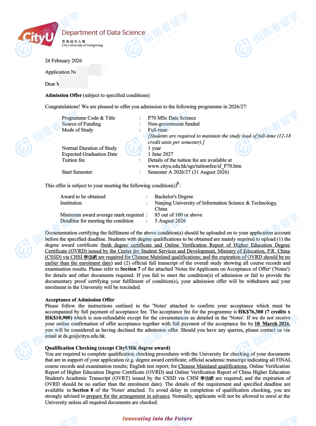 香港城市大学数据科学理学硕士研究生offer一枚