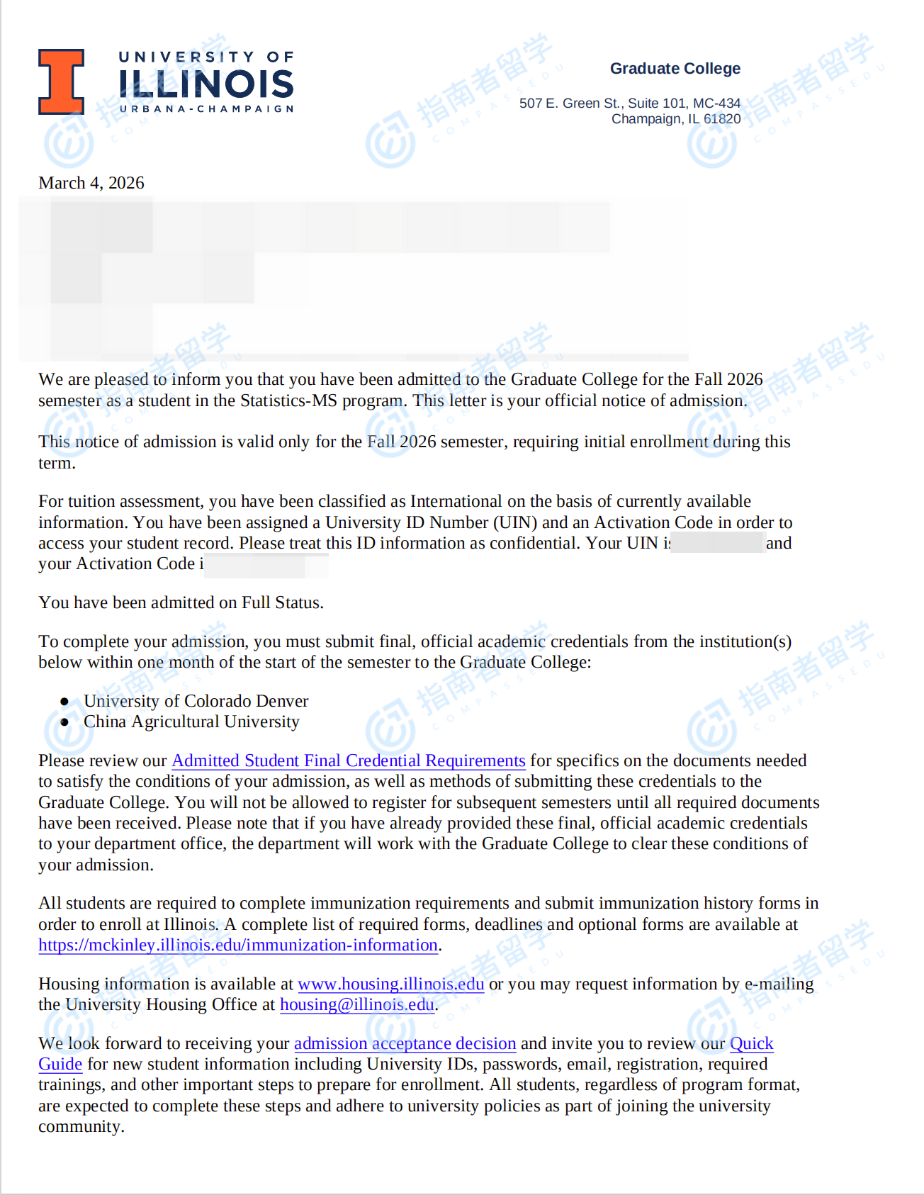 伊利诺伊大学香槟分校统计学硕士研究生offer一枚