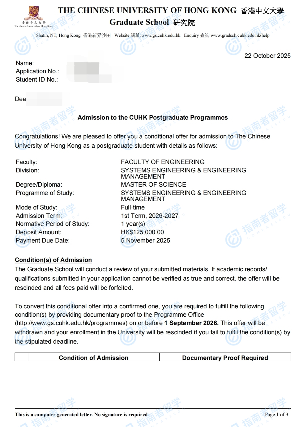 香港中文大学系统工程与工程管理理学硕士研究生offer一枚