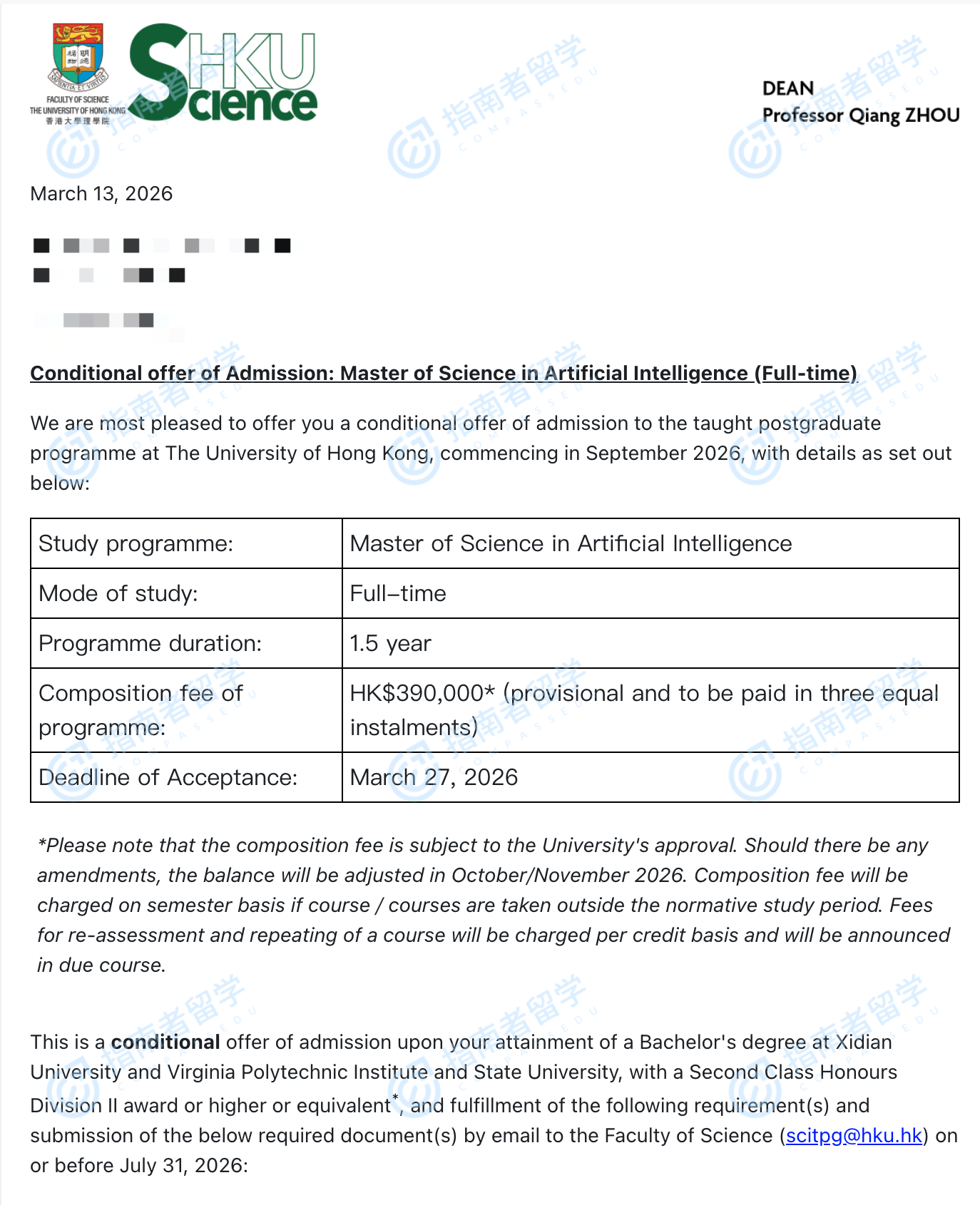 香港大学人工智能理学硕士研究生offer一枚