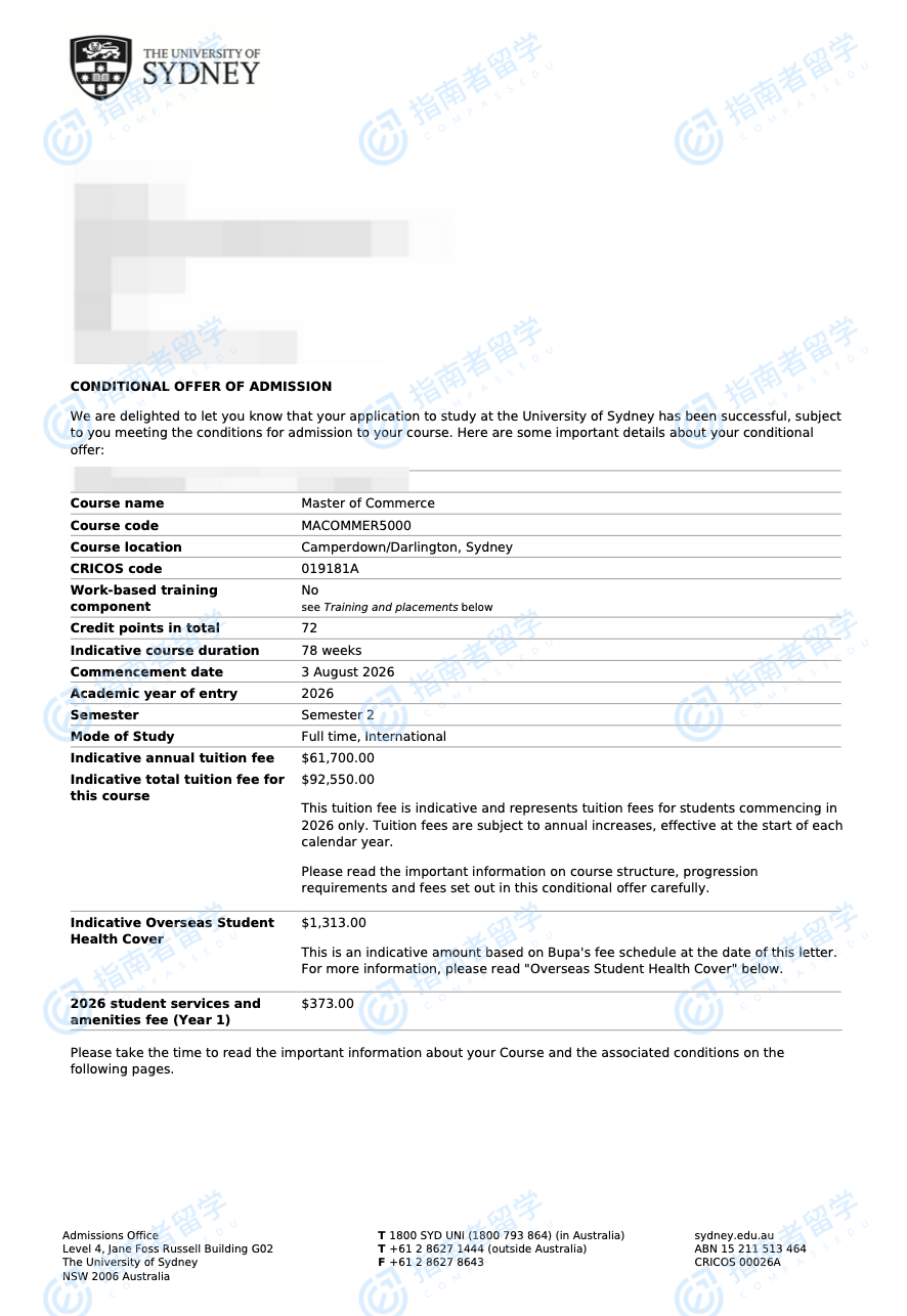 - 具有悉尼大学颁发的商学研究生文凭或研究生证书,平均学分达到65%。