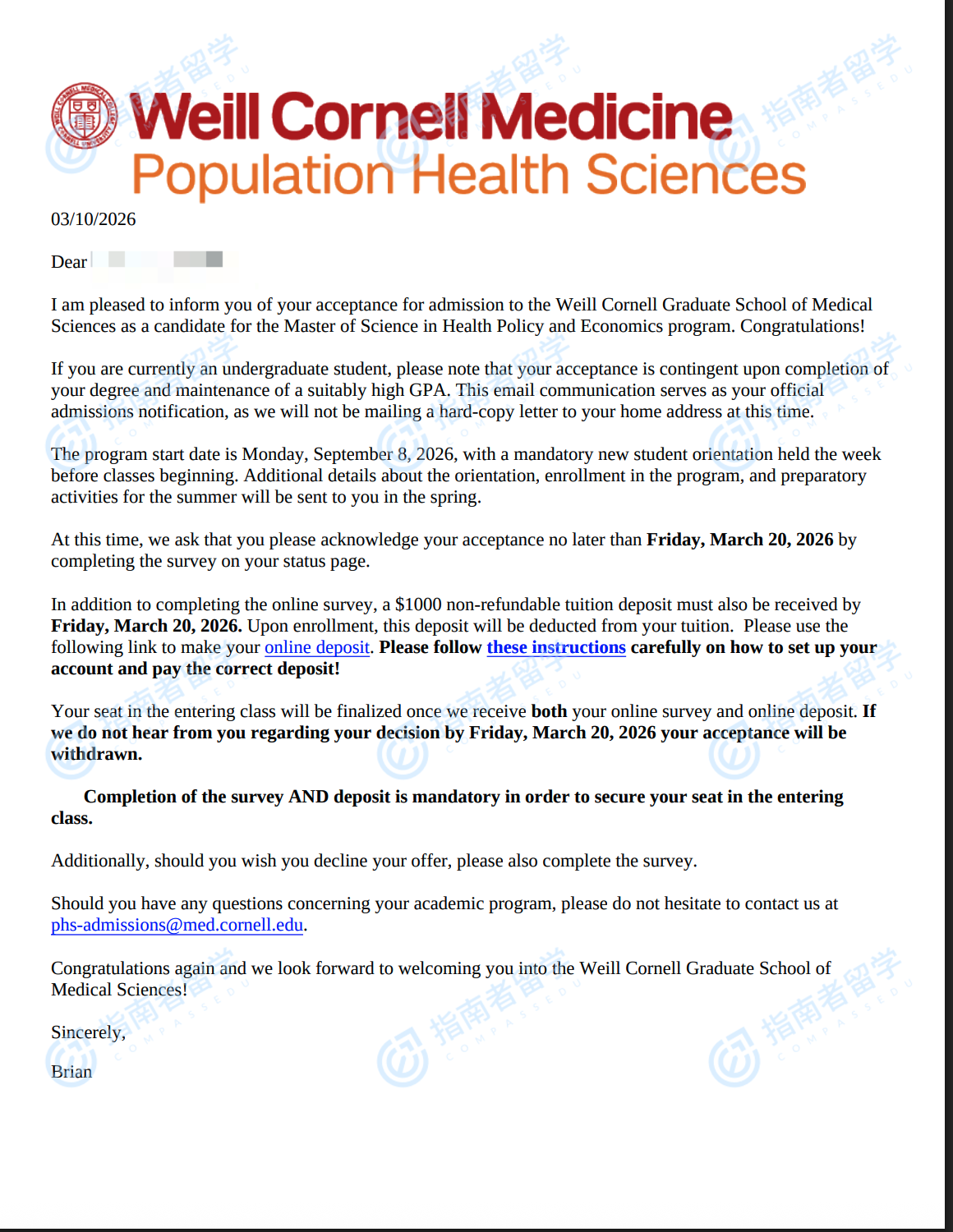 康奈尔大学卫生政策与经济学硕士研究生offer一枚
