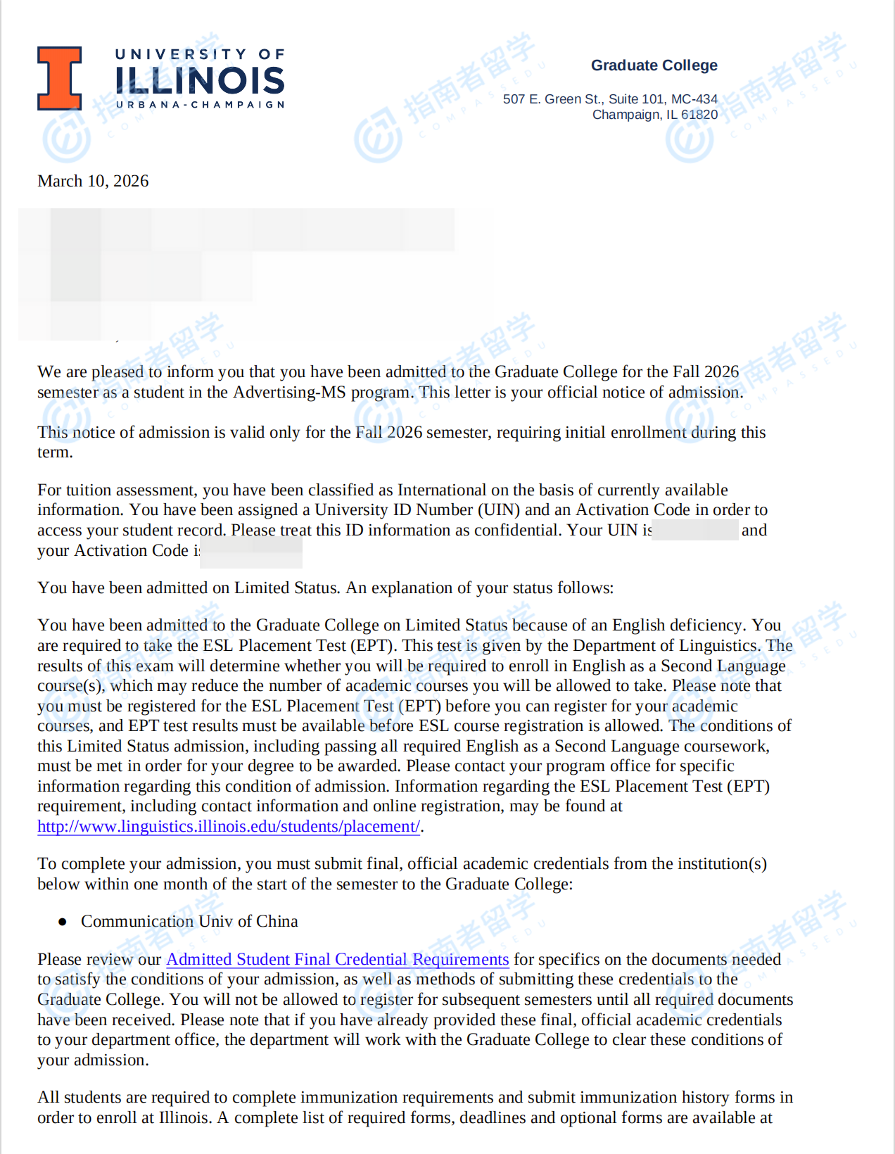 伊利诺伊大学香槟分校广告理学硕士研究生offer一枚