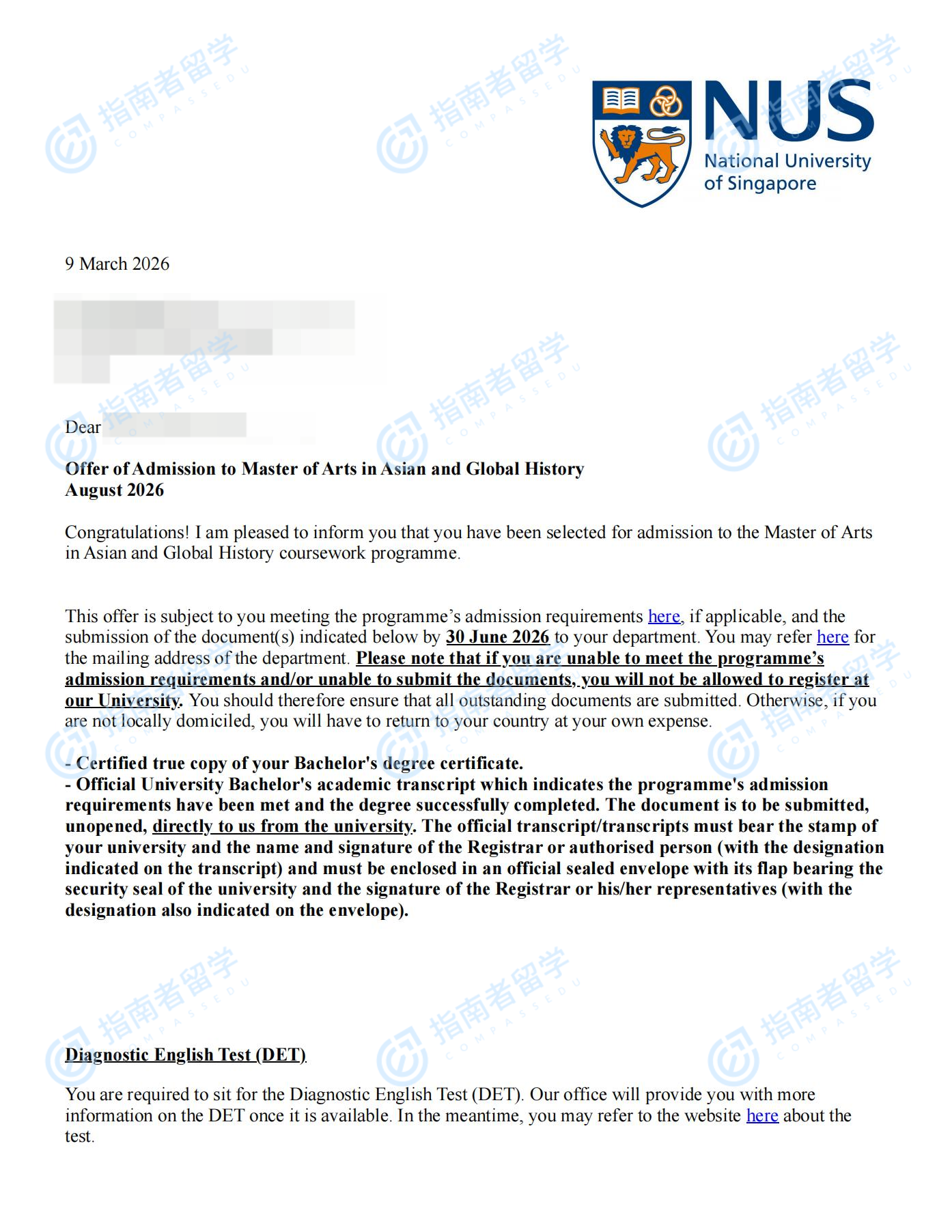 - 具有新加坡国立大学荣誉学位(优异/二等及以上)或同等学历(例如,4年制学士学位且平均成绩至少达到B),需要相关学科背景(如历史和地区研究,以及人文和社会科学的学科或跨学科学术课程),具备能够衡量历史学科的能力;或具有学士学位以及相关研究生文凭,GPA不低于3.00;或具有学士学位以及相关研究生证书,GPA不低于3.00<br>